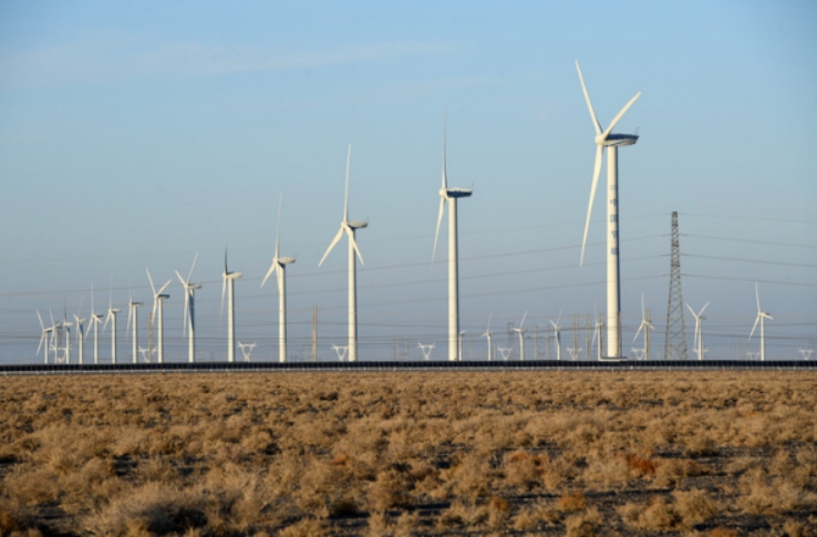 这是2021年12月8日拍摄的中节能(甘肃)风力发电有限公司玉门昌马风电场的风机。 新华社记者 范培珅 摄