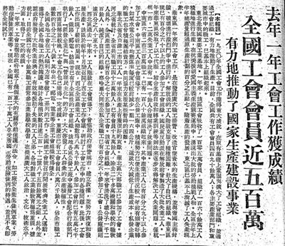 1951年1月7日,人民日报1版刊发消息,报道了当时全国工会会员近500万人。