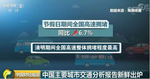 高速公路运行方面,本季节假日期间全国高速拥堵同比上升6.7%,清明期间全国高速整体拥堵程度最高,其次是五一,端午拥堵程度最低。