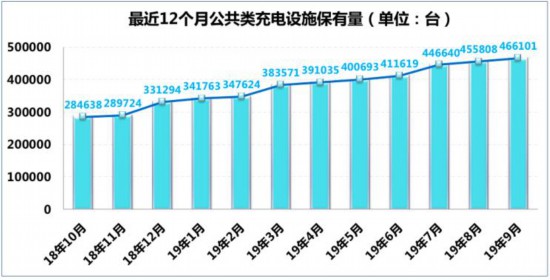 新能源快速发展的同时,充电桩产业不能“拖后腿”。10月14日,中国电动充电基础设施促进联盟发布数据显示,截至2019年9月,联盟内成员单位总计上报公共类充电桩46.6万台,其中交流充电桩27.1万台、直流充电桩19.5万台、交直流一体充电桩549台。2019年9月较2019年8月公共类充电桩增加1.0万台。从2018年10月到2019年9月,月均新增公共类充电桩约1.5万台,2019年9月同比增长63.7%。