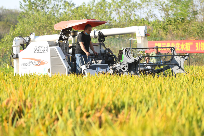 这是第三代杂交水稻新组合试验示范衡南基地测产现场(10月21日摄)。新华社记者 陈泽国 摄