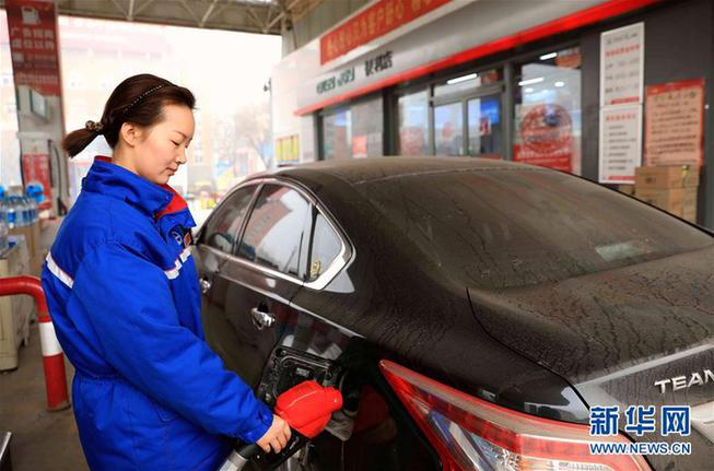 2月28日,在河北邢台市任县一处加油站,工作人员在给车辆加油。新华社发(宋杰 摄)