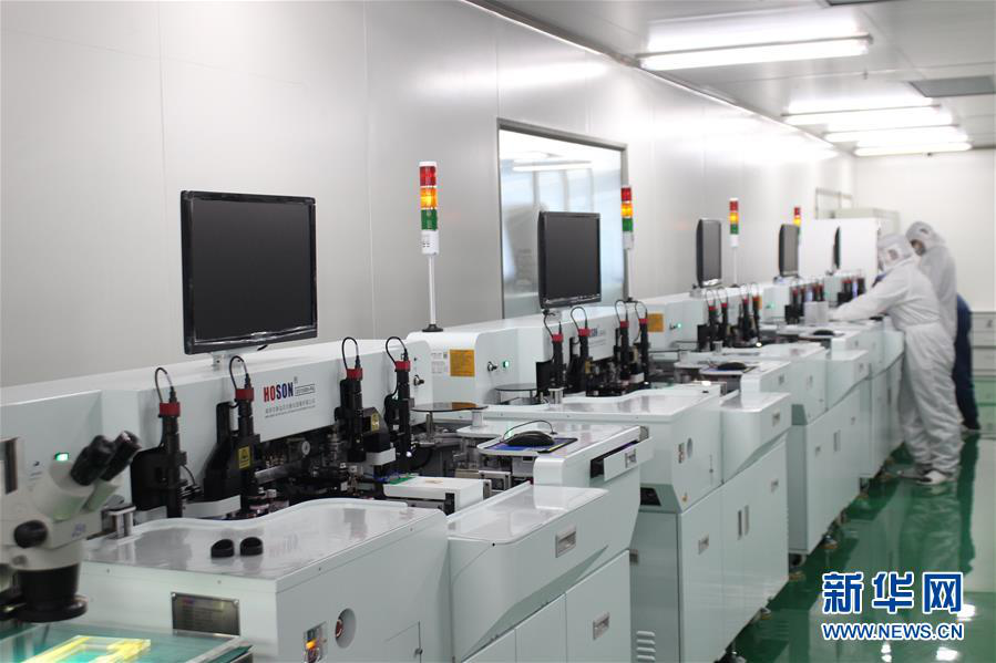 工人在雷曼光电位于广东惠州的新型COB超高清显示面板工厂里工作(资料照片)。 新华社发