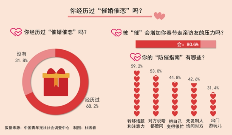 80.6%受访未婚青年坦言被“催”增加了春节走亲访友的压力