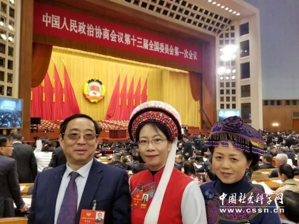 出席政协第十三届全国委员会第一次会议(前排中间) 作者供图