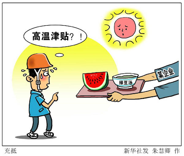 此外,记者采访发现,一些用人单位为减少高温津贴的发放,手段花样繁多:有的把高温津贴计算在最低工资标准内,或者把本该平时发放的奖金,一部分计为高温津贴;有的通过发放防暑降温物品替代高温津贴,用西瓜、绿豆汤打发了事。有工人算了这样一笔账:“西瓜2元一斤,绿豆汤3元一碗,一个月下来也只有几十元的成本,比发两三百元的高温津贴省多了。”