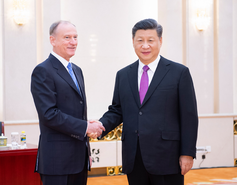 12月2日,国家主席习近平在北京人民大会堂会见来华出席中俄执法安全合作机制会议和中俄战略安全磋商的俄罗斯联邦安全会议秘书帕特鲁舍夫。新华社记者 李涛 摄