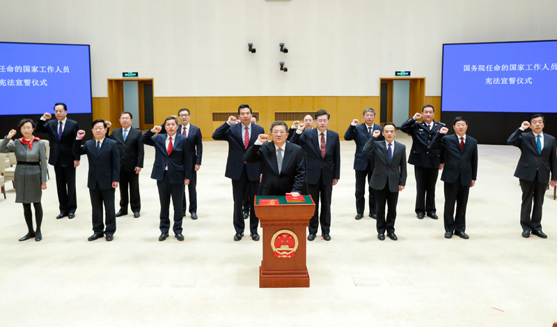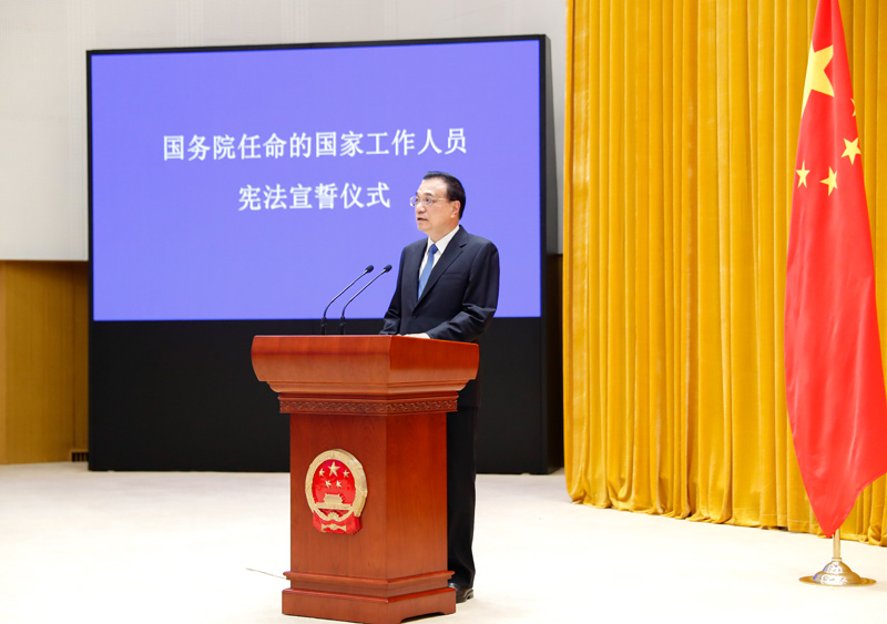 12月3日,国务院在中南海举行宪法宣誓仪式。国务院总理李克强监誓。