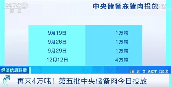 实际上,这已经是2019年内投放的第5批中央储备肉。9月,华商储备商品管理中心曾先后3次通过竞价交易投放中央储备猪肉共计3万吨。12月12日,再次向市场投放4万吨中央储备肉。