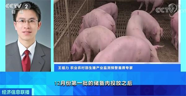 农业农村部生猪产业监测预警首席专家王祖力:12月份第1批的储备肉投放之后,市场的活猪价格也是出现了比较明显的下跌。12月10日的活猪价格大概是34.46元/公斤,到了12月15日,活猪的价格是下跌到了33.21元/公斤。