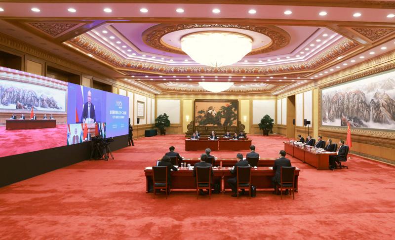 11月17日晚,金砖国家领导人第十二次会晤以视频方式举行。国家主席习近平在北京出席会晤并发表重要讲话。新华社记者 李学仁 摄