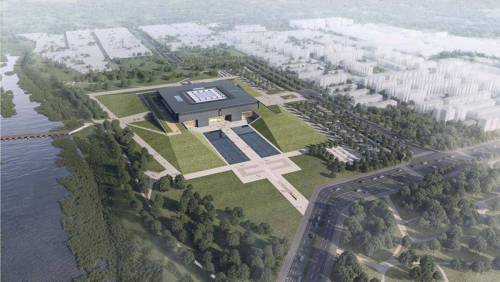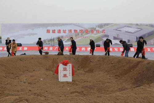 当天开工建设的殷墟遗址博物馆,位于洹河北岸,毗邻殷墟遗址核心区,与殷墟宫殿宗庙区隔河相望。
