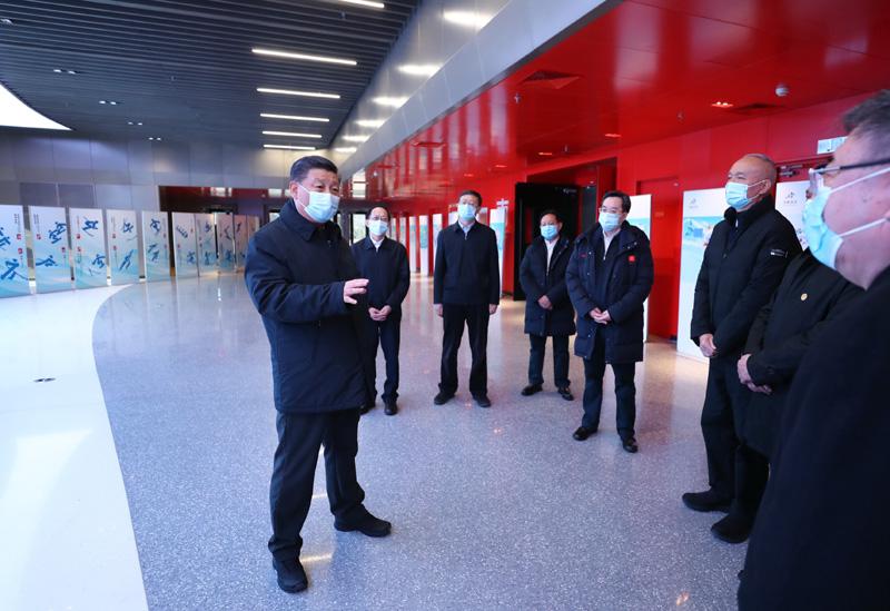 1月18日至20日,中共中央总书记、国家主席、中央军委主席习近平在北京、河北考察,并主持召开北京2022年冬奥会和冬残奥会筹办工作汇报会。这是19日下午,习近平在京张高铁太子城站考察调研。新华社记者 岳月伟 摄