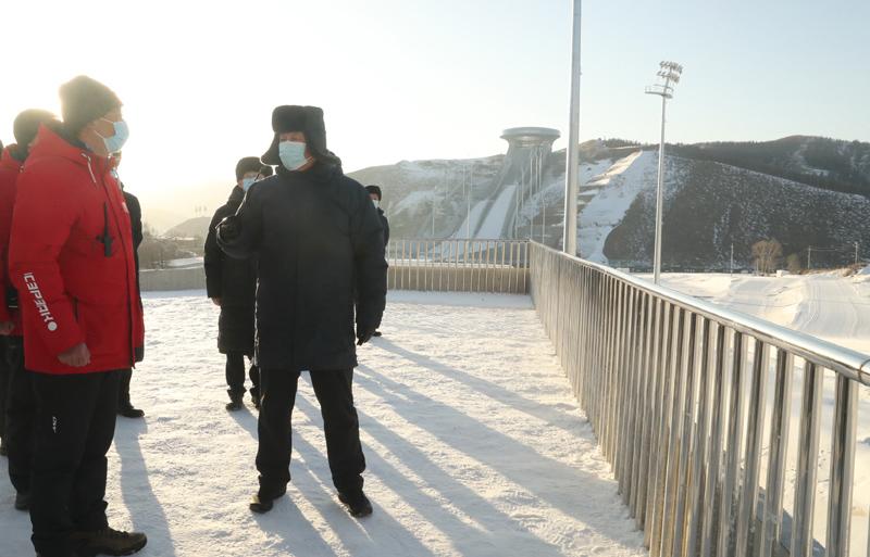 1月18日至20日,中共中央总书记、国家主席、中央军委主席习近平在北京、河北考察,并主持召开北京2022年冬奥会和冬残奥会筹办工作汇报会。这是19日下午,习近平在张家口赛区国家跳台滑雪中心考察调研。新华社记者 鞠鹏 摄