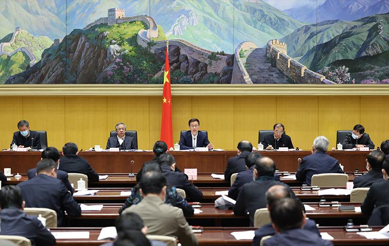 1月21日,中共中央政治局常委、国务院副总理韩正在北京主持召开农村乱占耕地建房问题专项整治工作会议并讲话。新华社记者 王晔 摄