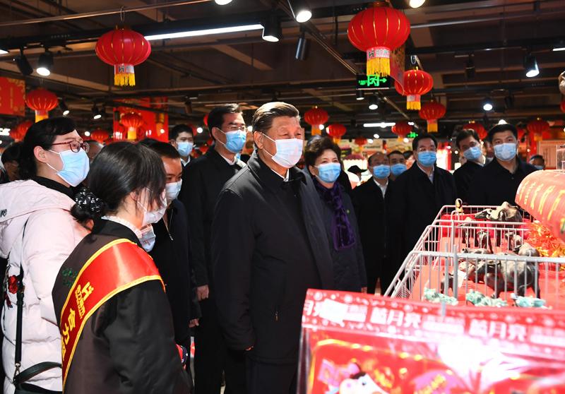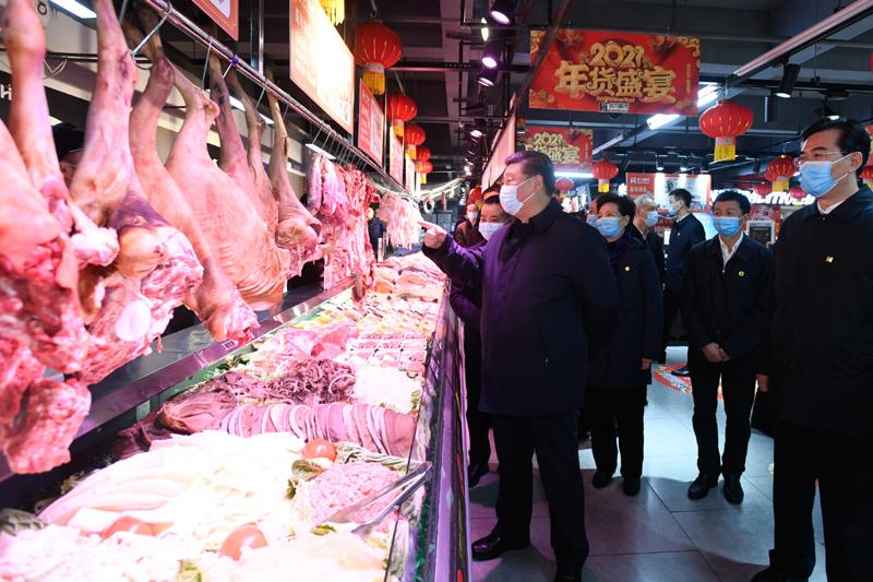 前来置办年货的群众热情向总书记问好。习近平亲切询问大家年货备齐没有。习近平强调,各级党委、政府和领导干部要把事关百姓切身利益的事情抓实抓好,尤其要落实防疫措施,加强食品安全监管,确保百姓过年安心、放心、舒心。