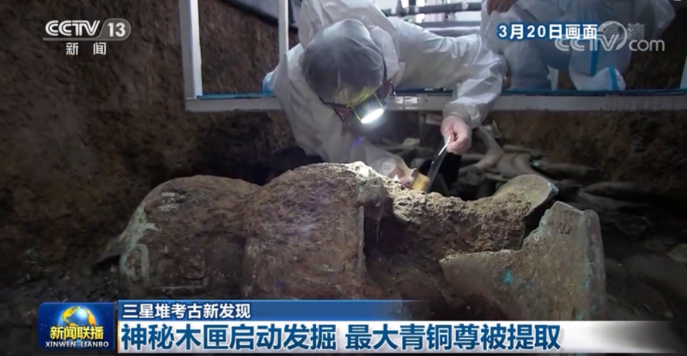 三星堆遗址考古器物层深度发掘工作正在进行,考古人员在6号坑发现了一个神秘木匣并已开始初步发掘。同时,此次考古发现的最大体量的青铜大口尊今天(3月21日)也被提取,关于象牙的古DNA研究也将同步展开。