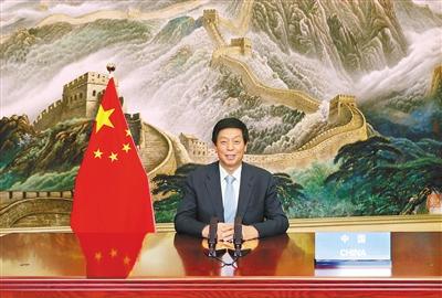 9月7日,全国人大常委会委员长栗战书在第五次世界议长大会发表视频致辞。