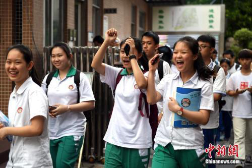 资料图:6月8日,广州华师附中考点,考生在考试结束后轻松走出考场。中新社记者 姬东 摄