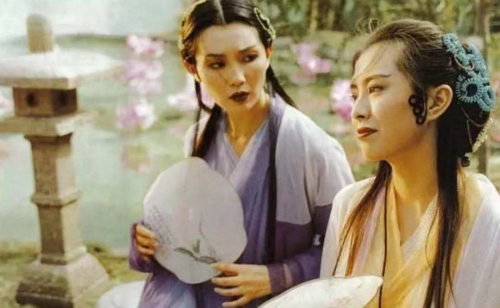 值得一提的是,在一些影视作品中,团扇也是为影片和人物增色的重要道具。例如,王祖贤和张曼玉出演的经典影片《青蛇》,姐妹二人身披雪纺纱裙,一个粉白、一个青紫,轻盈飘逸、漫步河边。再加上各自手中的一把素色团扇,谈笑处也学人故作娇羞、以扇遮面,很是“人模人样”。