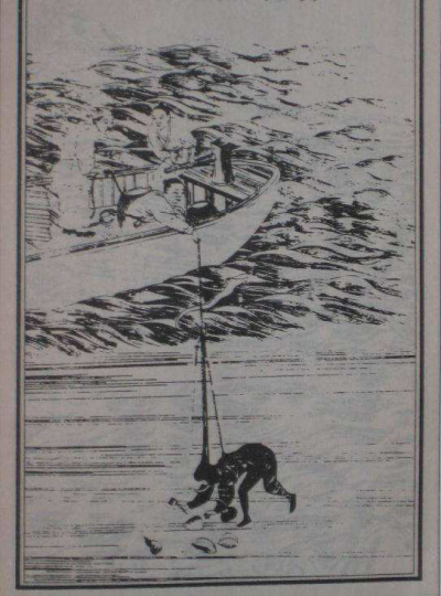 明朝的《天工开物·珠》亦有记载,“蜒户采珠,每岁必以三月时,牲杀祭海神,极其虔敬。蜒坐啖海腥,入水能视水色,知蛟龙之所在,则不敢侵犯……舟中以长绳系没人腰,携篮投水。凡没人以锡造弯环空管,其本缺处,对掩没人口鼻,令舒透呼吸于中,别以熟皮包络耳项之际。极深者至四,五百尺,拾蚌篮中。气逼则撼绳,其上急提引上,无命者或葬鱼腹。”