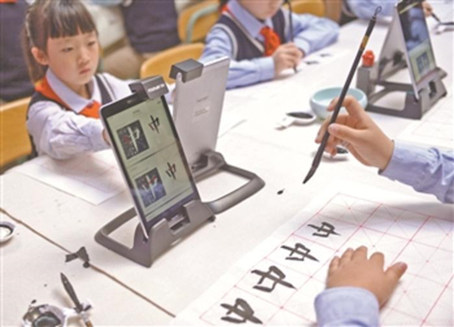“人工智能+书法教育”进校园。新华社记者 秦晴 摄