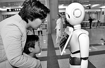 市民在合肥某医院感受机器人导诊服务(2017年摄)。新华社发