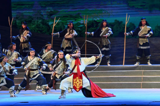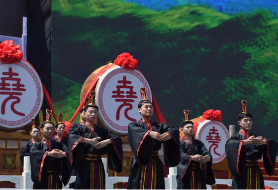 6月10日,演员在山西临汾首届尧都文化旅游节开幕式上表演歌舞。新华社发