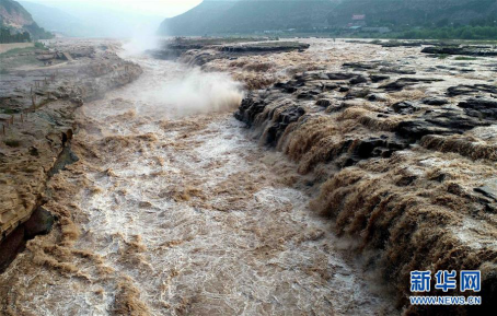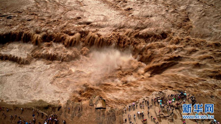 8月4日在山西临汾吉县航拍的黄河壶口瀑布。受近日汛期影响,黄河壶口瀑布水量暴涨,气势磅礴。 新华社发(刘宏达 摄)