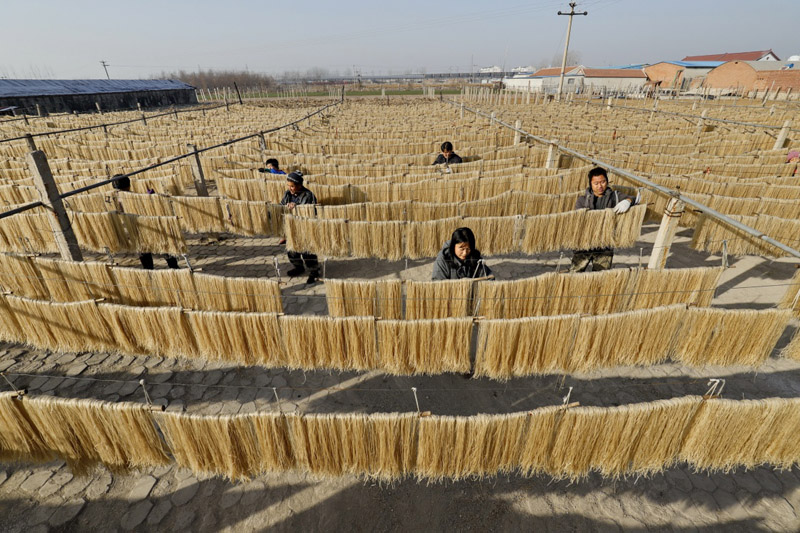 入冬以来,河北省遵化市平安城镇中滩村村民忙着加工晾晒粉条,供应市场。中滩村是当地远近闻名的“粉条加工专业村”,粉条加工成为当地农民冬闲增收的重要途径。