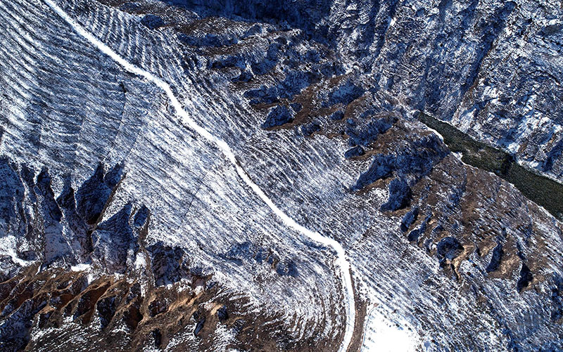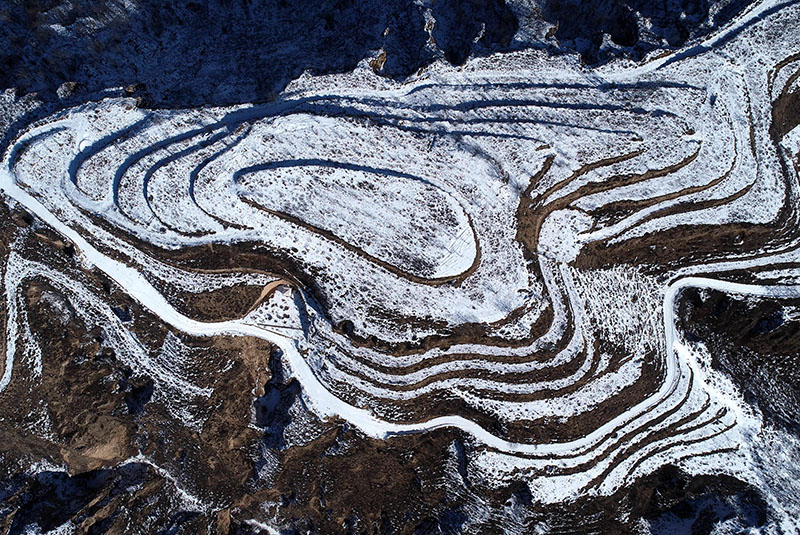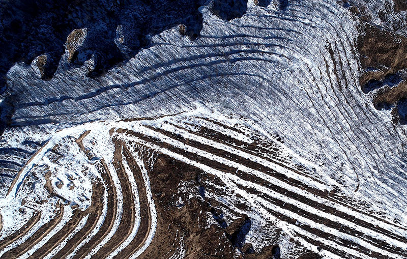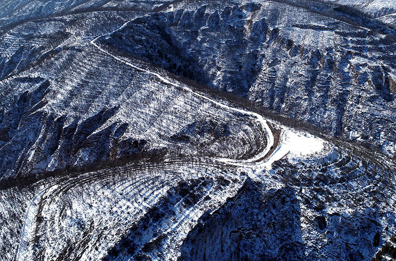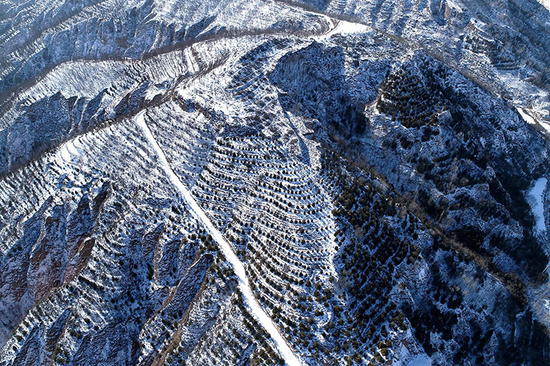 陕西北部地区近日迎来降雪天气,黄土高原在白雪的装扮下呈现出别样风光。