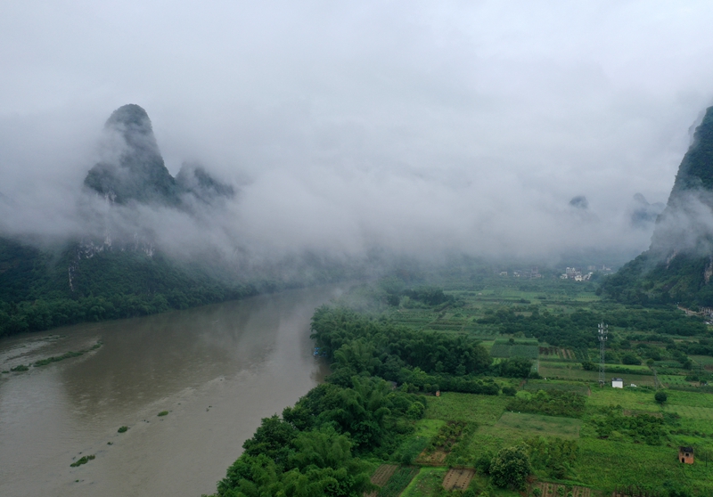 “苍苍森八桂,兹地在湘南。江作青罗带,山如碧玉篸……”一千多年前,唐朝诗人韩愈写尽桂林山水之美。初夏时节,在广西桂林市阳朔县兴坪镇,蓝天白云下,烟雨朦胧中,桂林山水尽显秀美。