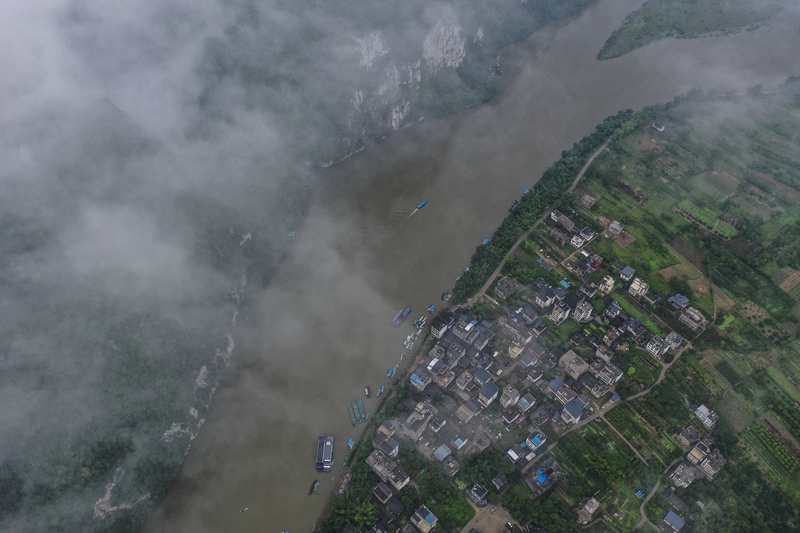 这是在广西桂林市阳朔县兴坪镇拍摄的风光(5月19日摄,无人机照片)。