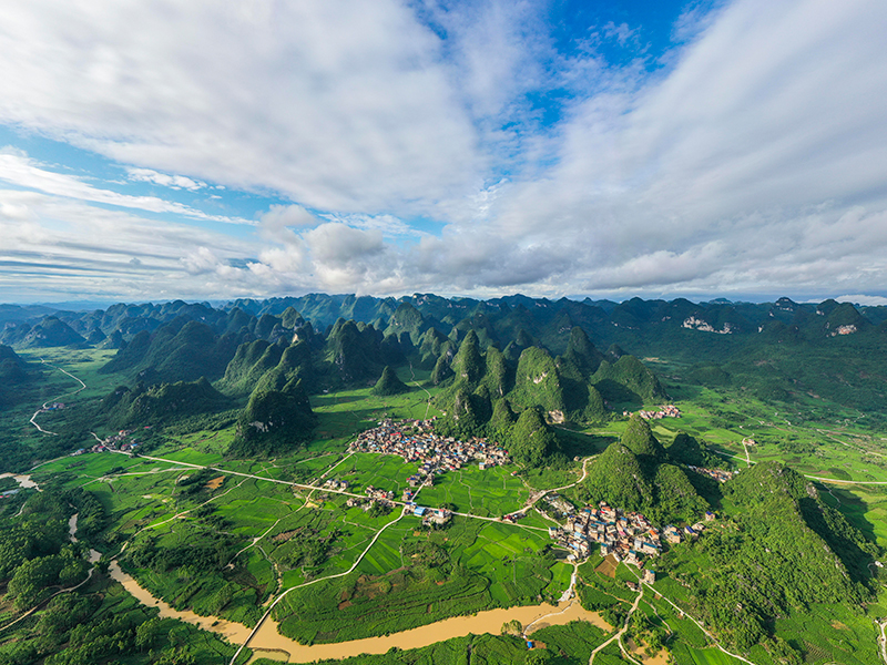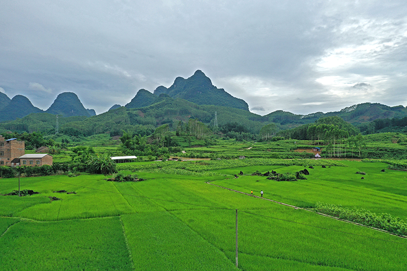 初夏,雨后初霁的广西环江毛南族自治县大才乡重楼村绿意盎然,田园如画。
