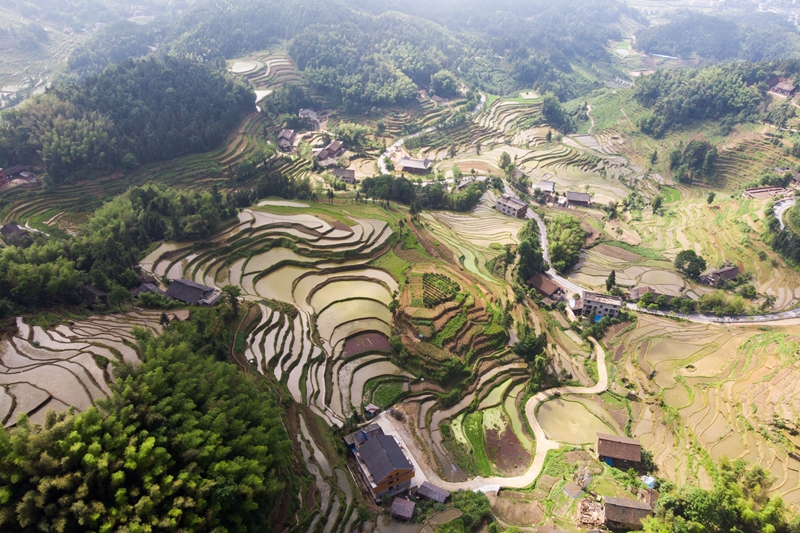 这是5月30日在湖南省新化县水车镇拍摄的紫鹊界梯田。