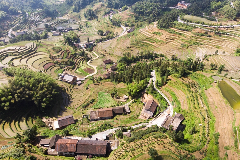这是5月30日在湖南省新化县水车镇拍摄的紫鹊界梯田(无人机照片)。