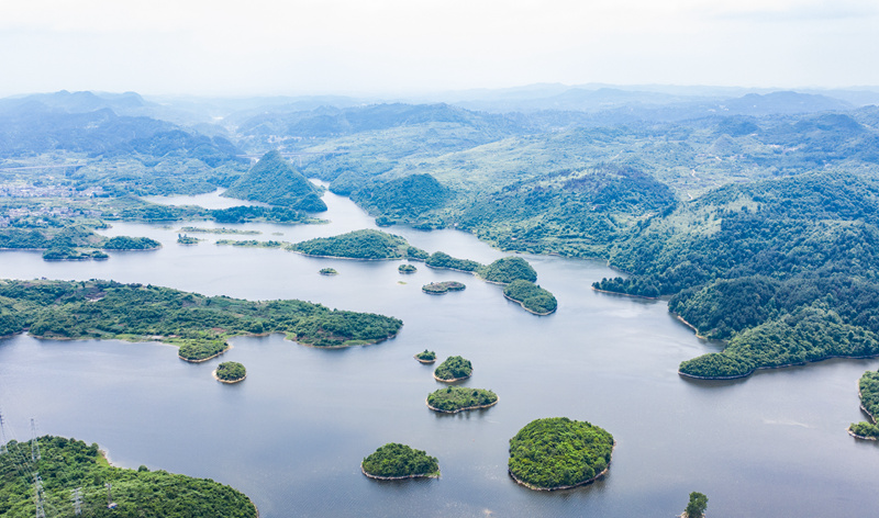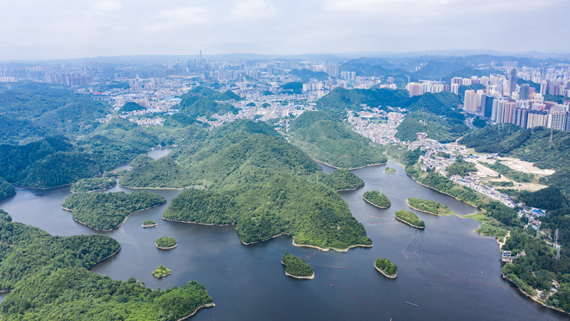 6月2日拍摄的贵阳市阿哈湖国家湿地公园(无人机照片)。