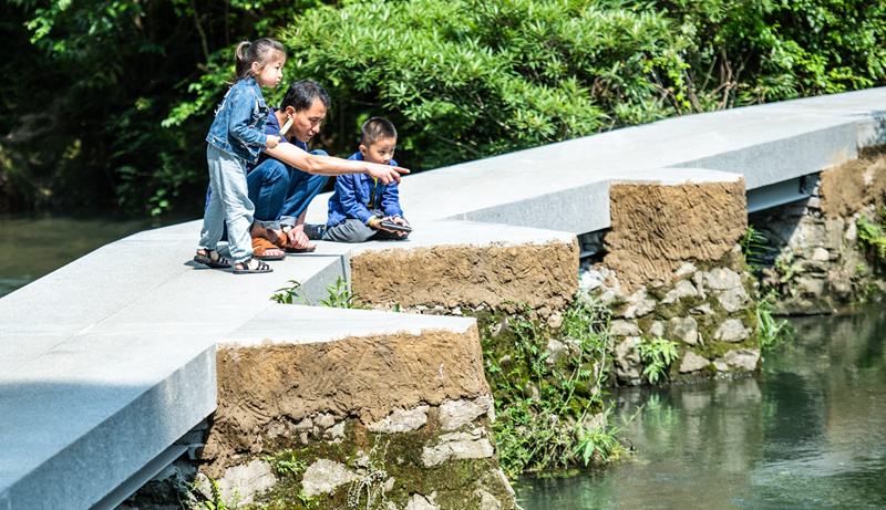 6月2日,家长带着小朋友在贵阳市阿哈湖国家湿地公园内游玩。