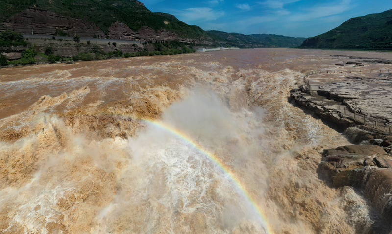 7月7日在黄河壶口瀑布景区拍摄的景观(无人机照片)。