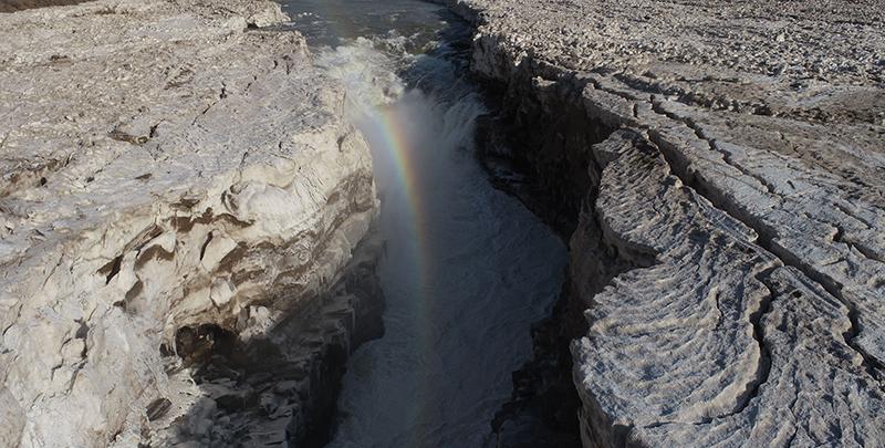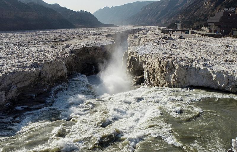 近日,受气温回升影响,黄河壶口段冰消河开,冰封了近一个月的壶口瀑布再现奔腾咆哮的壮美雄姿。