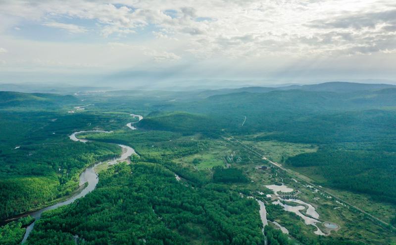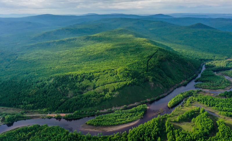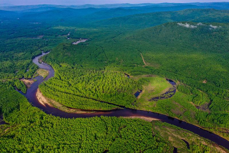 初夏时节,位于内蒙古大兴安岭深处的根河源国家湿地公园森林繁茂,郁郁葱葱,河流在林海中蜿蜒流淌,景色宜人。