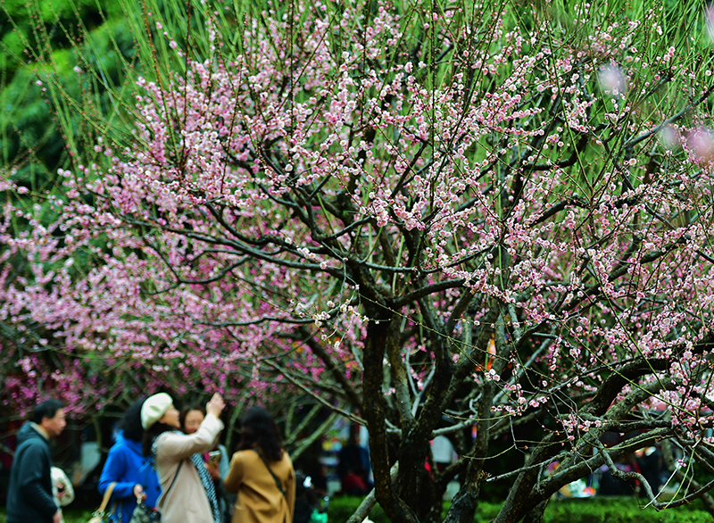 近日,福建省福州西湖公园里的梅花竞相绽放,吸引人们徜徉其间、赏花留影,成为一道靓丽的风景线。