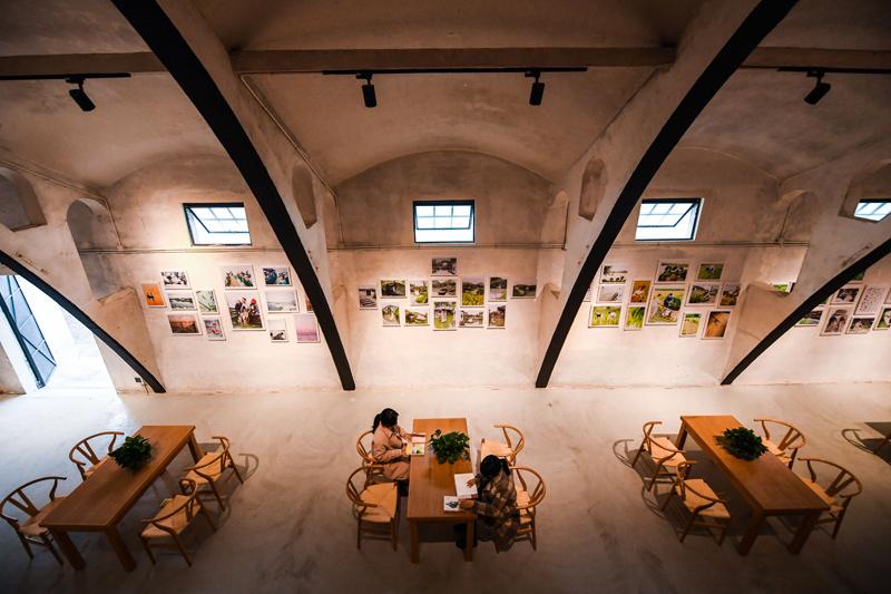 12月20日,村民在旧粮仓改建的“漾西书吧”内看书。
