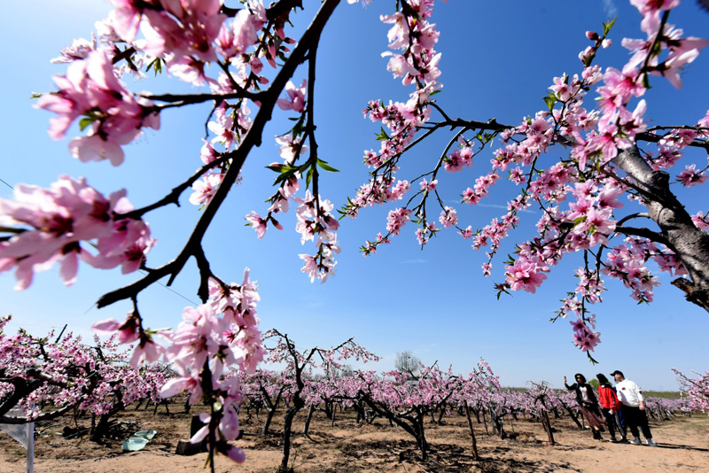 仲春时节,山东省临沂市郯城县马头镇“农家花园”里桃花正艳,吸引游客前来踏青赏花。近年来,郯城县农民通过流转土地、复耕开发等形式创办多个集赏花采摘、旅游观光、休闲娱乐为一体的花园式农场,带动当地乡村旅游发展。