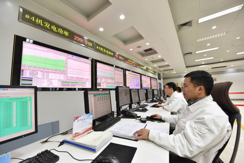 12月3日,工作人员在国华定州电厂集中控制室监控热网设备运行情况。