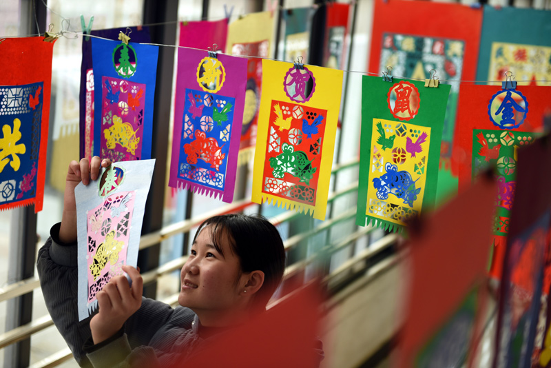 1月16日,山东省临沂市郯城县马头镇万高册村村民在晾晒门笺。