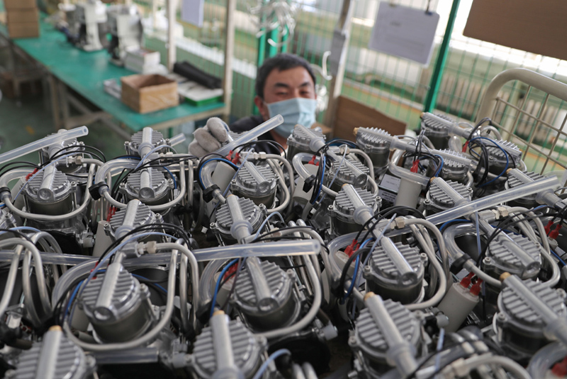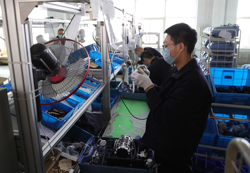 2月5日,沈阳新松医疗科技股份有限公司员工在车间生产制氧机。