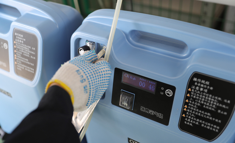 2月5日,沈阳新松医疗科技股份有限公司员工在检测制氧机。