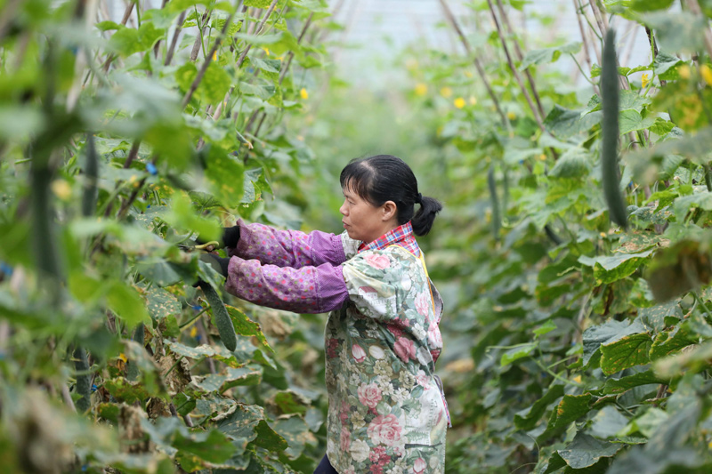 5月20日,广西三江侗族自治县斗江镇牙林村农民在管护黄瓜。