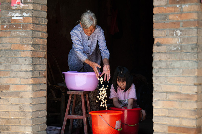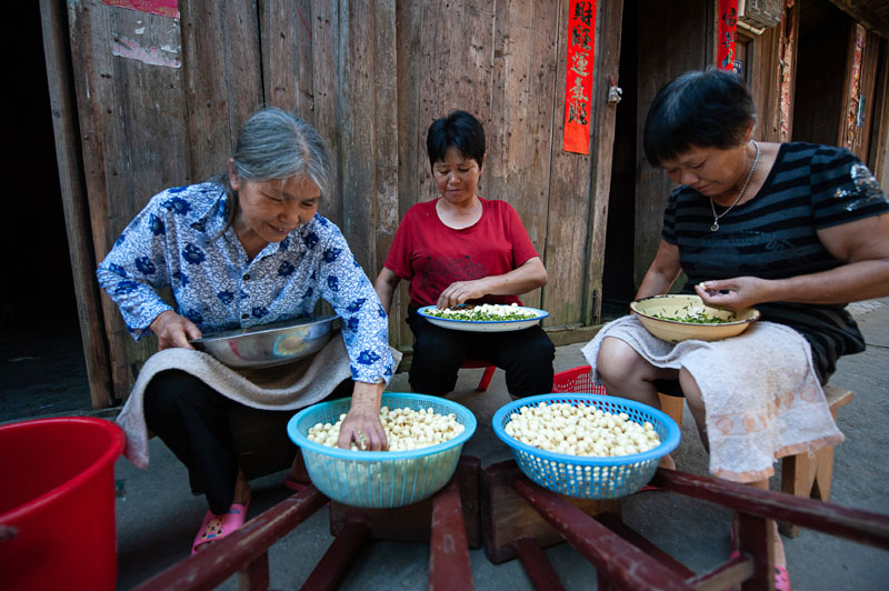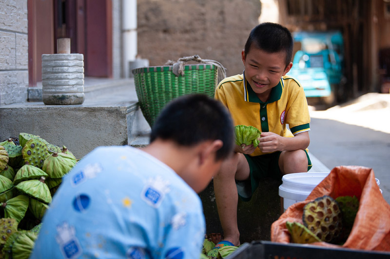 8月3日,在福建南平后畲村,暑期在家的孩子帮长辈清洗莲子。
